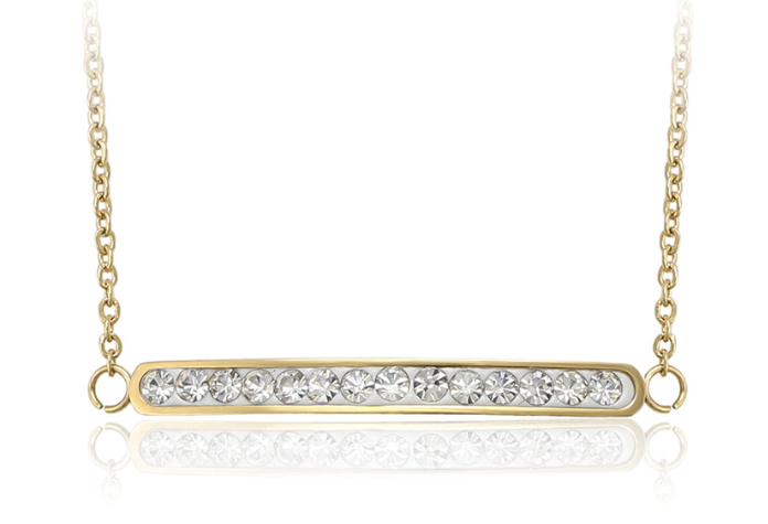 A stunning bar pendant covered in stones. This can be paired perfectly with the Hayley Bracelet or can be worn on its own. Elegant and oh-so-sparkly